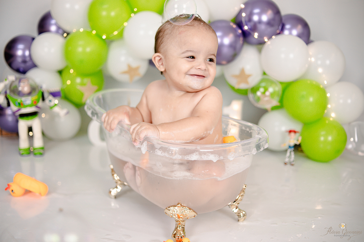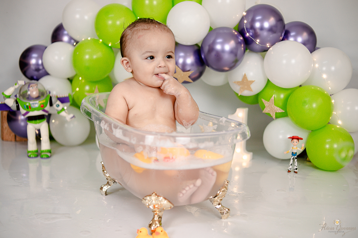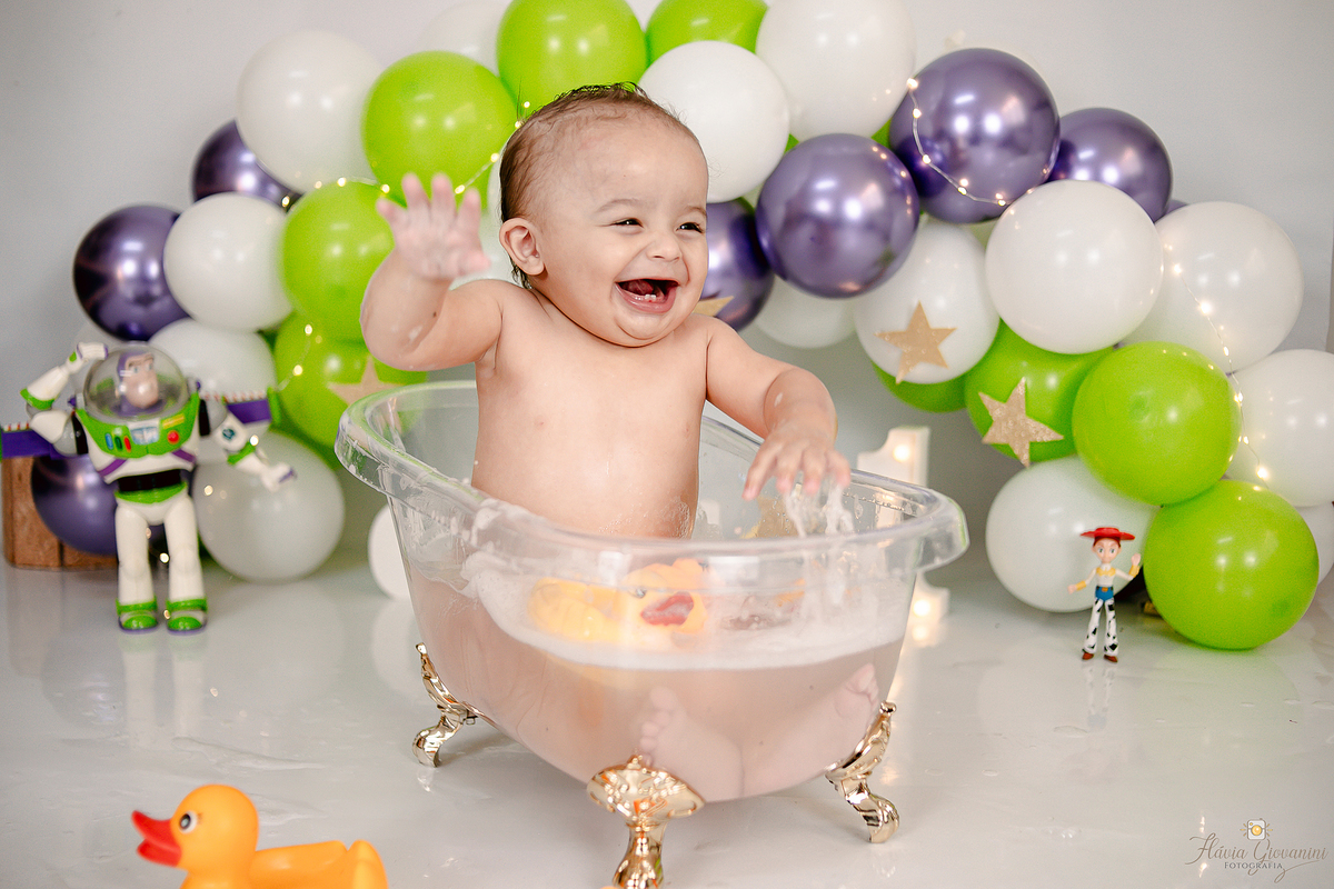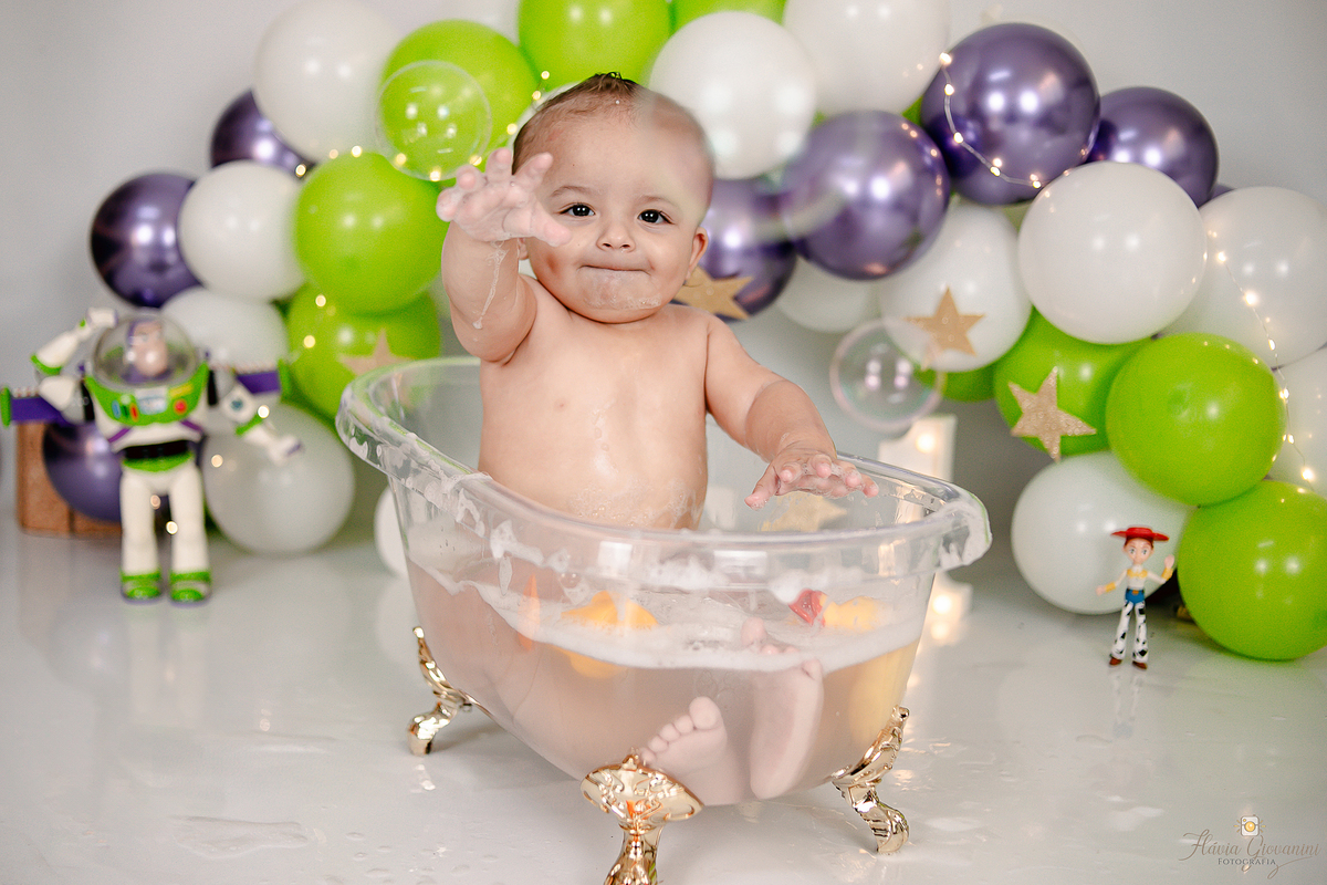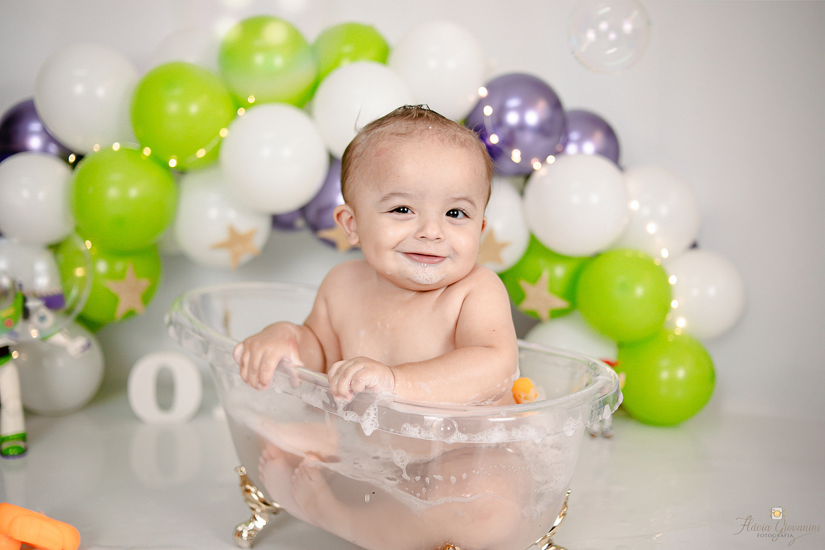 Consiste basicamente em deixar o bebê de fato esmagar o bolo/Fruta, se lambuzar e se divertir à vontade - Temos a opção de ensaio no estúdio e externo* - Começamos com fotos com os Pais e irmãos, passamos para o bebê sozinho no cenário e depois amassando o bolo. Por fim, um splash de presente para se refrescar e relaxar.